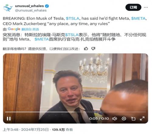 马斯克再次约战扎克伯格对方应邀并放话:告诉我在哪打!