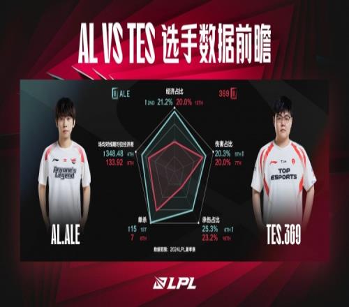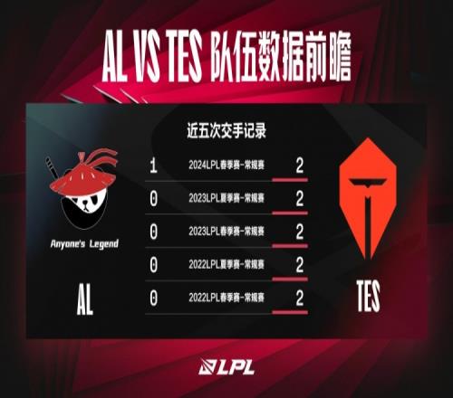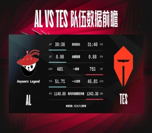 体育资讯7月26日报道宣称 英雄联盟赛事数据官博发布2024LPL夏季赛组内赛AL对战TES数据前瞻,原文如下: