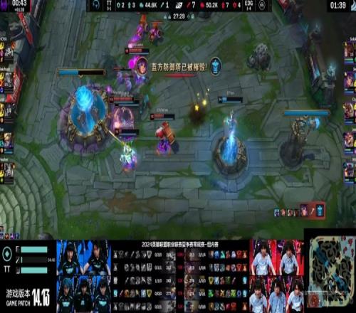 【24:39】中路拉扯,HOYA大纳尔闪现想拍结果被Leave斯莫德预判闪现规避!EDG集火击杀纳尔,TT多人残血被迫后撤,EDG转头拿下大龙!