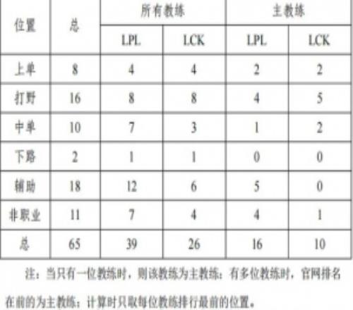LPL辅助选手转教练的最多,LCK则是打野选手转的最多。