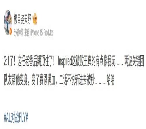体育资讯7月3日报道宣称 MSI淘汰赛AL 2-1 FLY,解说天舒点评: