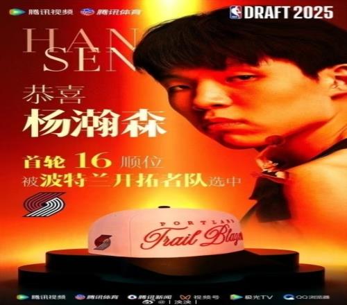 体育资讯6月26日报道宣称 2025NBA选秀大会,波特兰开拓者在首轮第16顺位摘下杨瀚森,他也成为中国第三位NBA首轮秀。