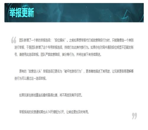 要被清算了LOL新版本更新,举报选项新增“段位操纵”用来举报代打
