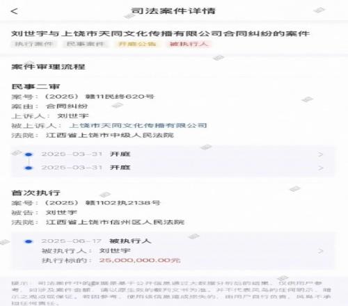 体育资讯6月21日报道宣称 mlxg刘世宇与RNG关联公司上饶市天同文化传播有限公司合同纠纷的案件,mlxg被执行2500万!