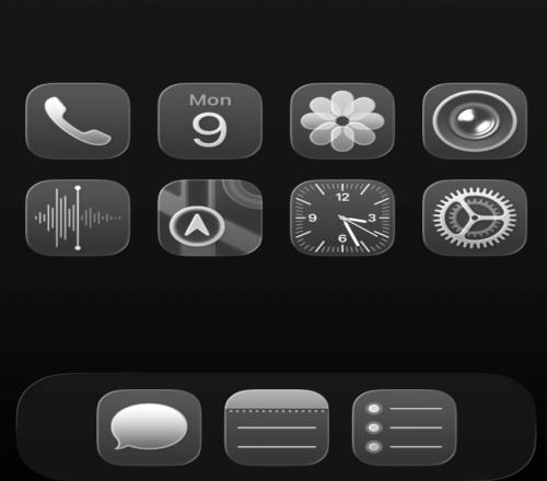 即便是刻意设置的黑白极简桌面,你依然能立刻察觉变化:iOS 26界面整体更加通透、明亮,图标和模块仿佛浸泡在玻璃水滴中,视觉质感完全不同。如果你把彩色模式开启,液态玻璃的视觉特性会更加明显。图标虽基本沿用旧版设计,但整体观感更“圆润”。