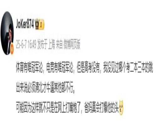 体育资讯6月7日报道宣称 今天一年一度高考日,前LPL解说Joker微博发文: