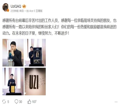 Uzi更博致谢:你们的每一份热爱和鼓励都是我前进的动力