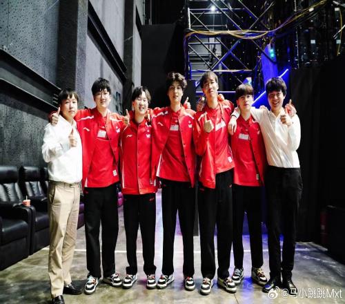 WE主教练赛后分享合照:打职业是6强中单,现在是6强教练,合理!