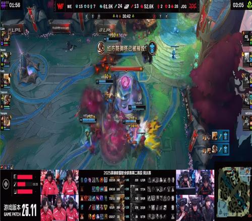 体育资讯6月5日报道宣称 JDG坐镇北京主场对阵WE首局溃败,Ale奥恩1/3/8,Missing牛头辅助0/7/9。