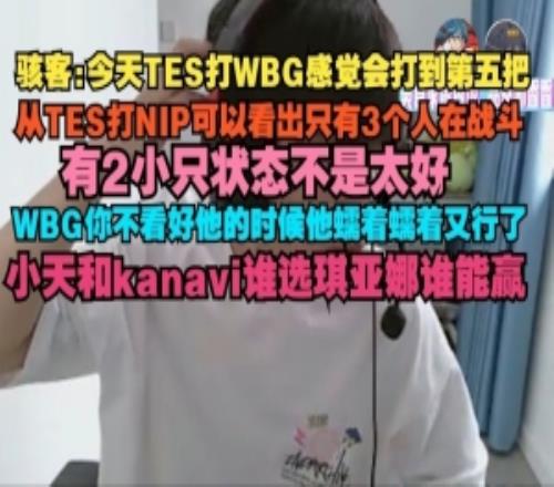 H4cker:今天TES打WBG感觉会打到第五把,从TES打NIP可以看出只有3个人在战斗,有2小只状态不是太好,WBG你不看好他的时候他蠕着蠕着又行了,小天和kanavi谁选奇亚娜谁赢。