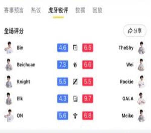 请问今天赢的是__?虎牙赛后评分除Wei以外全员评分均不低于BLG