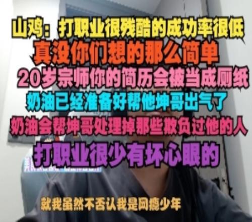 shanji:打职业很残酷的成功率很低,真没你们想的那么简单,20宗师你的简历会被当成厕纸,奶油已经准备看帮他坤哥出气了,奶油会帮坤哥处理掉那些欺负过他的人