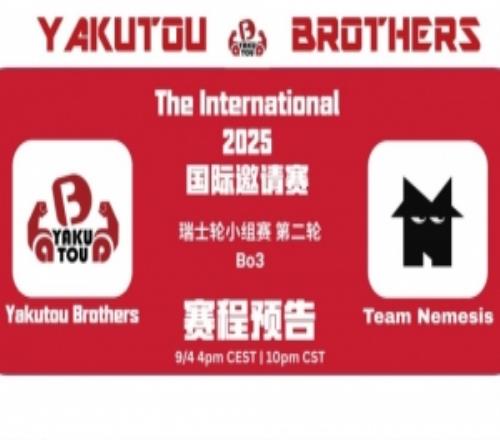 体育资讯9月4日报道宣称 Ti14小组赛首日瑞士轮第二轮0-1组,Yakutou Brothers对上Nomesis。