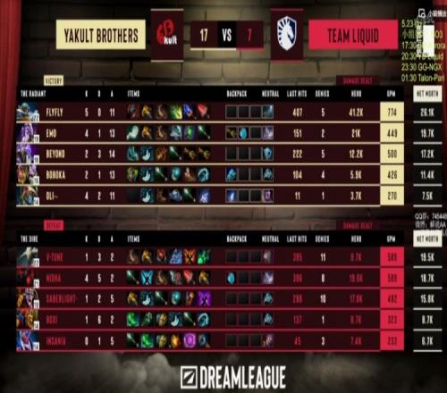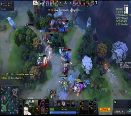 【20分钟】上路团战第一波,Liquid双大哥BKB强行打掉了flyfly飞机的盾,而YB则是切死了Boxi蝙蝠!起身的飞机被Nisha影魔+Insania萨尔双大压起身差点没了!还好Oli神谕给到保护!双方拉开!