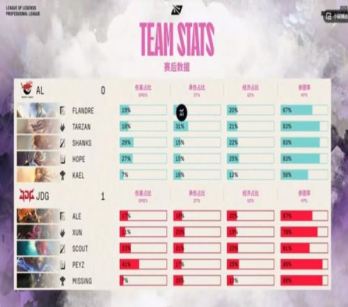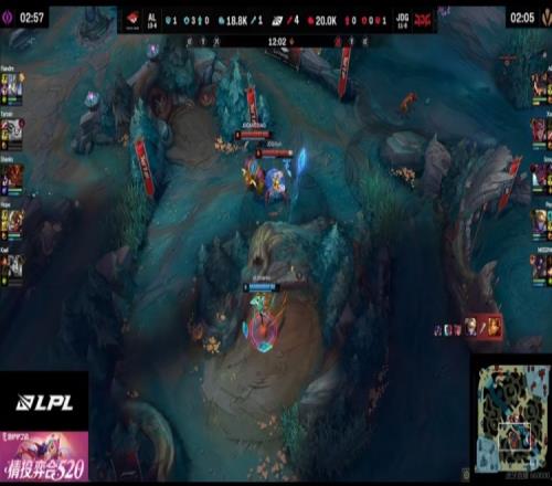 但是AL连续gank找到机会,先是JDG抱团拿下大龙之后强开被AL反打0换2,随后Scout永恩下路被四人强杀,少个人的JDG还想追击,结果被Shanks岩雀拉满控制,AL一波2换5团灭JDG直接抹平了经济差!