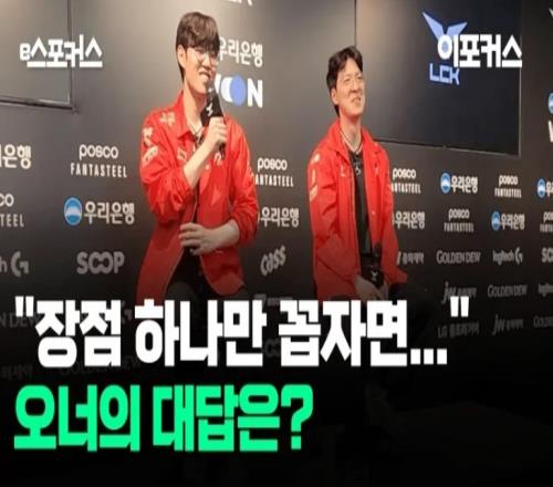 Oner:我觉得POM不仅取决于实力,运气也很重要。要获得这个荣誉需要队友们共同创造机会,现在能这样幸运地包揽POM,真的非常感谢大家。其实像今天的比赛,我个人认为其他队友比我发挥得更好,所以对POM没有特别的执念。