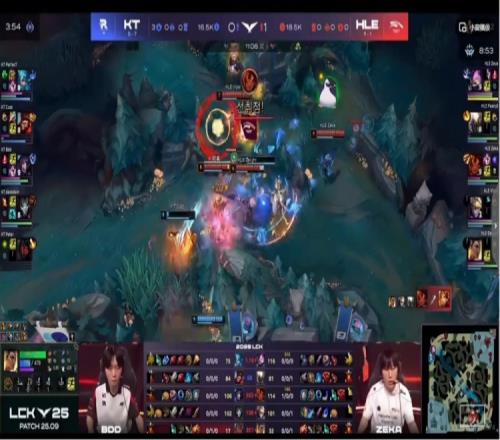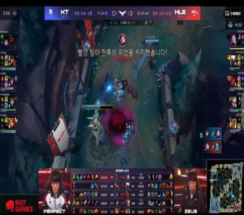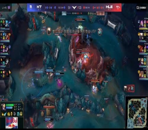 【15:55】KT打先锋但是Bdd阿狸没T来不了啊!HLE正面五打四强杀掉了Cuzz猴子,接盘先锋之后再拆KT上一塔!双方经济差快6K了!