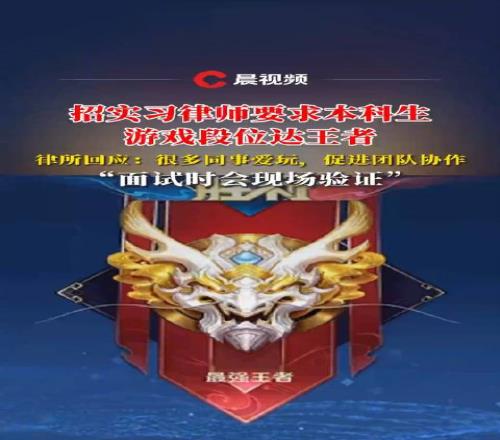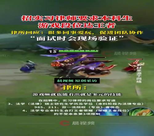 律所招实习律师要求本科生游戏段位达王者:很多同事爱玩促进团队协作
