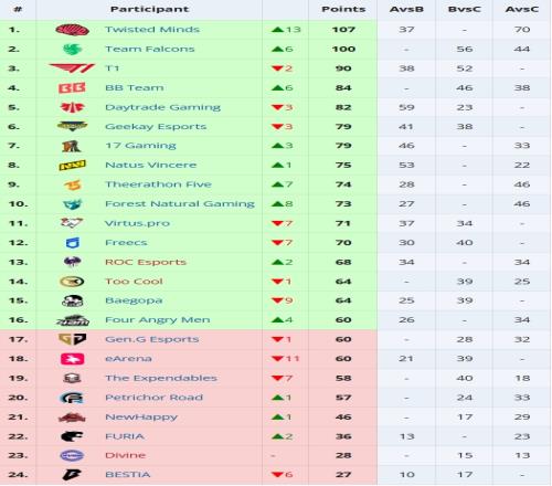 积分榜详细情况: