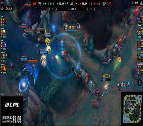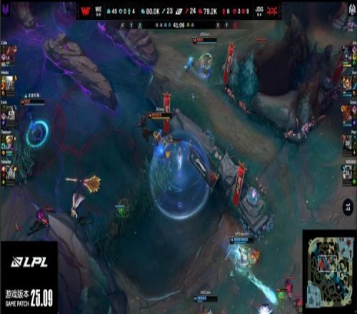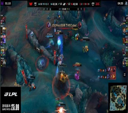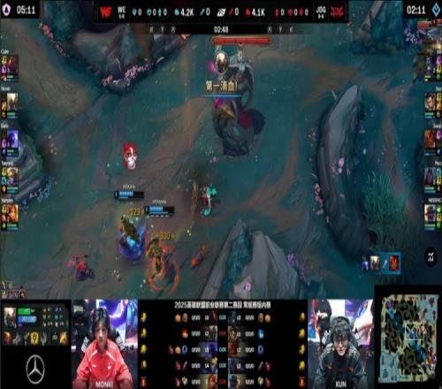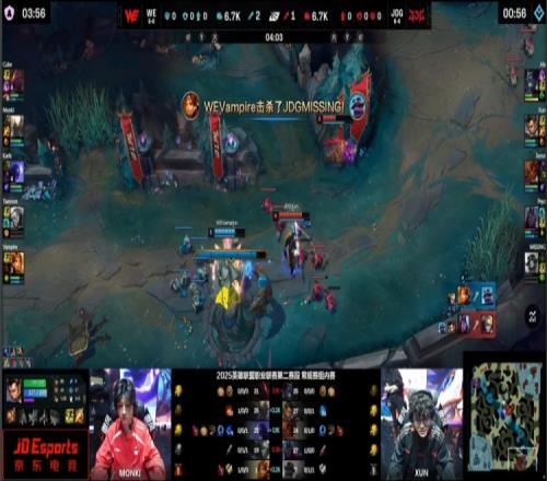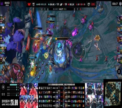 后期双方围绕大龙和远古龙展开拉锯,Taeyoon与Karis中路被秒后WE一度丢失中路水晶,但团战中Peyz多次被秒让JDG推进受阻。最终一波远古龙团,JDG打出2换3后成功拿下老龙,Xun强势开团,Scout岩雀抬两人,WE阵型被撕裂,JDG携双龙会一波终结比赛,先下一城。