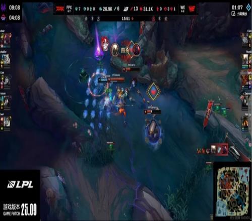 【18:41】FPX下路强抓兰博失败,还被WE绕后反包换掉了Jwei芮尔!WE顺势拆掉FPX下一塔!