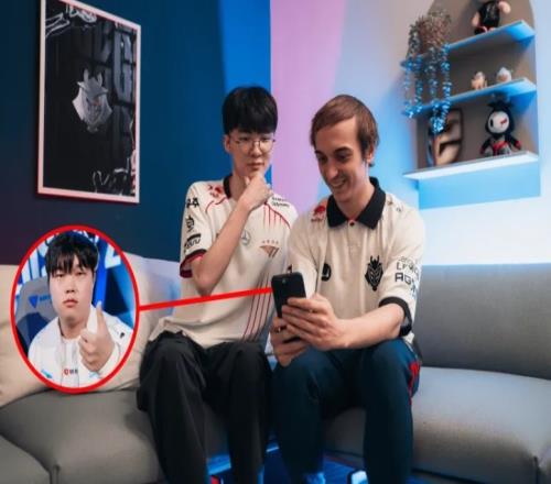 而在图片中出现的是G2中单Caps和T1中单Faker,手机内则暗示是BLG上单Bin。