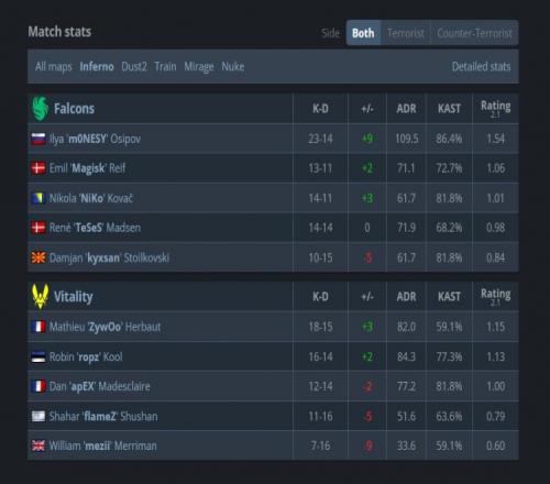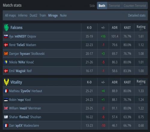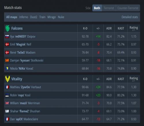 体育资讯5月5日报道宣称 Blast对抗赛S1决赛,Falcons与小蜜蜂鏖战至图五,最终2-3不敌小蜜蜂屈居亚军。在决赛五张地图中,Niko以68-84,0.9Rating的战绩垫底。