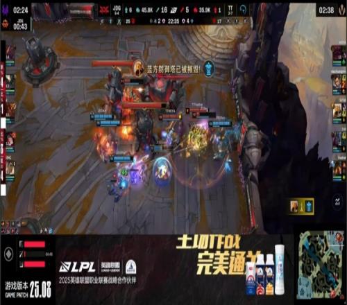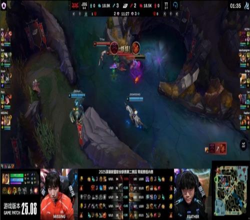 中期TT尝试反扑,但Feather多次被抓,团战失利不断,JDG稳扎稳打,逐步拉开经济,先锋团和小龙团都打出大优势,经济领先迅速扩大至7k。