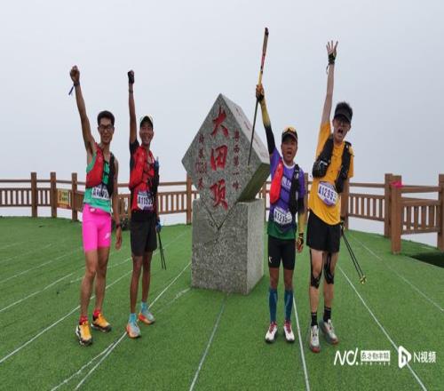 一路攀爬的艰辛与疲惫,在登临粤西第一高峰“大田顶”那一刻化为欣慰与欢呼。站在海拔1703.8米的粤西之巅,云海在脚下翻涌,山风呼啸而过,穿透云层的光芒照亮每一张坚毅的面庞。短暂休整后,挑战者们调整好呼吸,再次迈开脚步,继续前进。