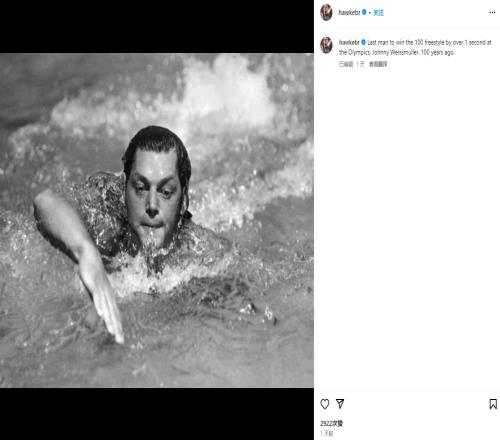 他在社媒写道:“上一个在奥运会100米自由泳以超过1秒优势夺冠的人,约翰尼-维斯穆勒,发生在100年前。”