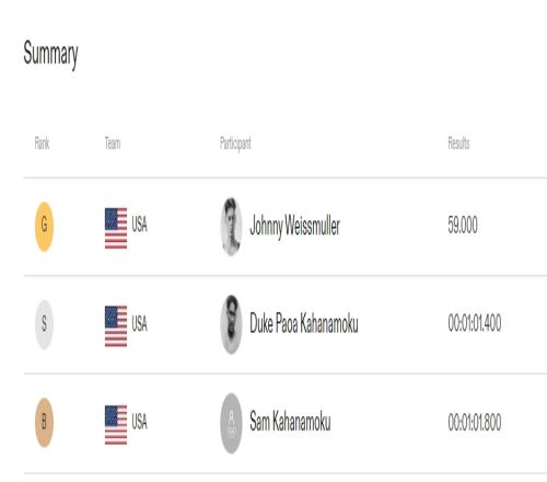 1924年巴黎奥运会男子100米自由泳前三名成绩