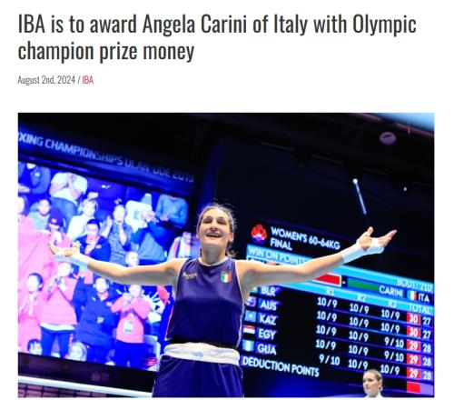 正面刚奥委会!国际拳协:向退赛的卡里尼发放奥运冠军档次奖金!