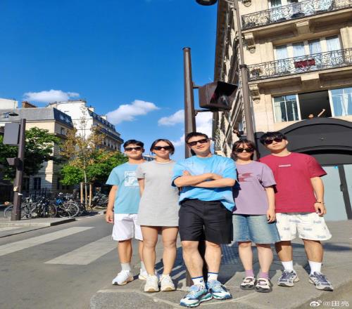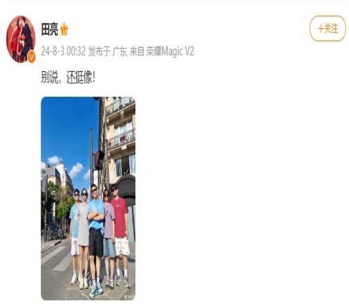 在巴黎与儿子女儿带货直播田亮晒合照辟谣,表示是工作人员