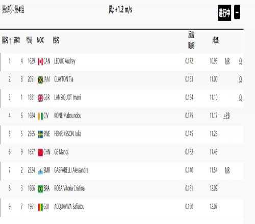 葛曼棋在第四组第九道出战,最终她的成绩是11秒45,排名第六,无缘下一轮。