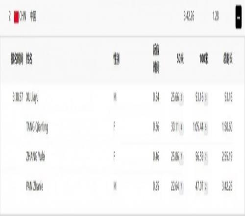 体育资讯8月2日报道宣称 男女混合4X100米混合泳接力预赛,中国队总成绩3分42秒26,排名小组第二、总成绩第三晋级决赛。