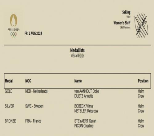体育资讯8月2日报道宣称 巴黎奥运会女子帆船49人FX级奖牌赛,10支球队展开奖牌争夺战。