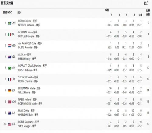 最终经过激烈角逐,荷兰组合拿到金牌,瑞典组合拿到银牌,法国组合拿到铜牌。