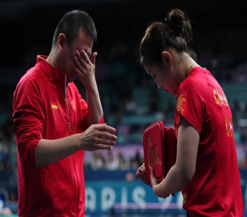 2024巴黎奥运会乒乓球女单半决赛:中国女乒主教练马琳激动落泪
