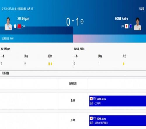 本场比赛还有最后26秒时,日本选手素根辉拿到技有。徐仕妍在剩下的时间里没能得分,最终输掉比赛。