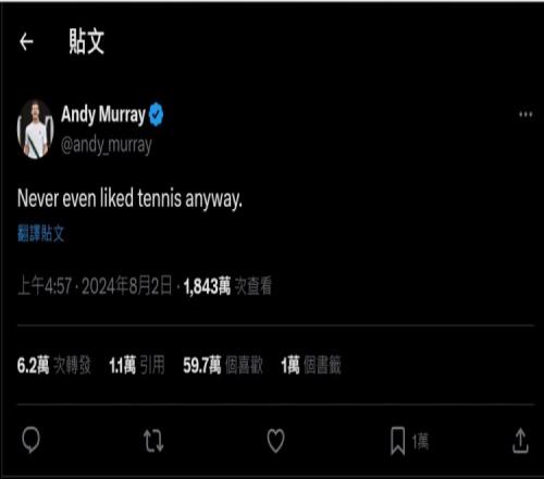 体育资讯8月2日报道宣称 37岁的安迪-穆雷在罗兰加洛斯结束了自己辉煌的职业生涯,在2-6、4-6负于美国组合弗里茨/保罗之后,穆雷在个人推特上写道:“反正我从来就不喜欢网球。”并且迅速将自己的个人简介从“打网球(I play tennis)”改成了“打过网球(I played tennis)”。