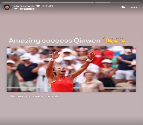 今日,德约科维奇更新动态祝贺了郑钦文,德约写道:了不起的成功,钦文。