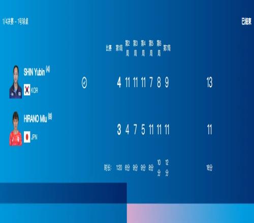 本场比赛申裕斌前三局3-0领先,但被平野美宇连扳三局拖入抢七,第七局申裕斌挽救两个赛点,最终以13-11险胜对手。