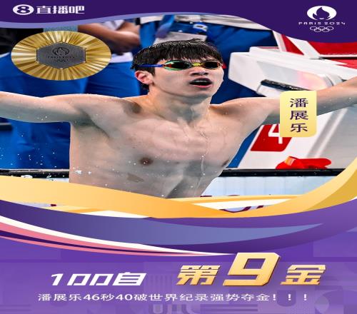 巴黎奥运会男子100米自由泳决赛,中国选手潘展乐游出46秒4的成绩创造新的世界纪录夺金,这是中国游泳队在巴黎奥运会的第一枚金牌。