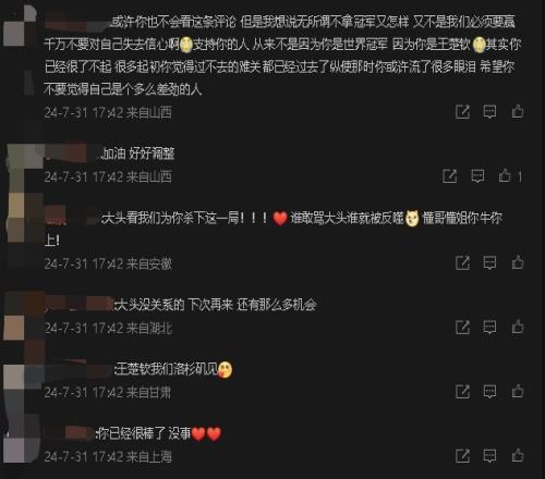 赛后,不少网友来到王楚钦社媒为他加油打气↓
