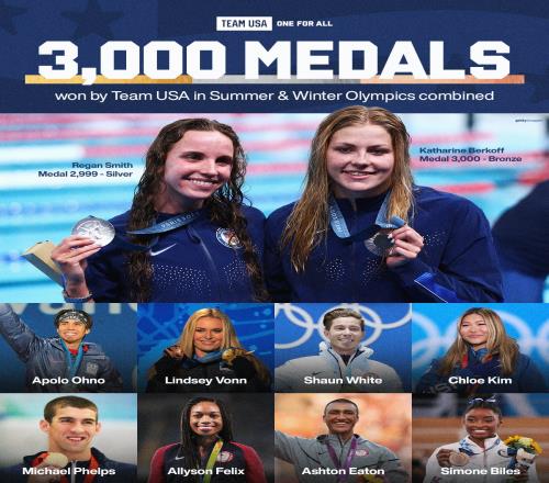 美国奥运队官方表示,美国在奥运会上已经有3000枚奖牌(夏奥会+冬奥会),史密斯和伯克夫分别为第2999枚奖牌和第3000枚奖牌获得者(美国本届奖牌数目前26枚,总数已超3000枚)。