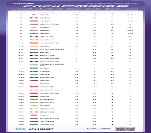 体育资讯07月30日报道宣称 美国著名体育媒体Bleacher Report今日晒出了巴黎奥运的奖牌榜。