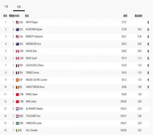 另一位中国选手万乐天游出1分00秒06,排在所有半决赛选手第12名,同样无缘决赛。