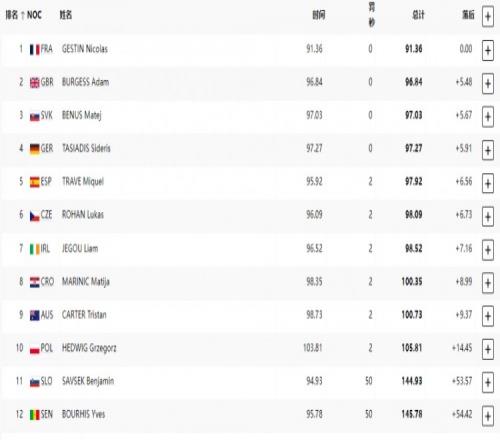 英国选手博格斯用时96.84拿到银牌,斯洛伐克的贝努斯获得一枚铜牌。