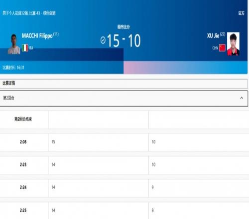 体育资讯7月29日报道宣称 巴黎奥运会结束一场男子花剑1/16决赛争夺,中国选手许杰10比15不敌意大利选手马基,无缘16强。