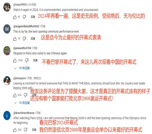 怀念2008!巴黎开幕式后,国外网友涌入北京奥运开幕式评论区盛赞